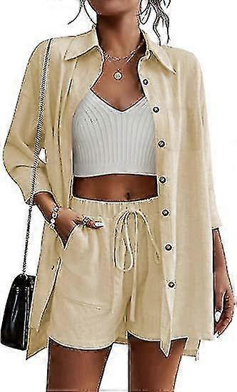 Women's 2-Piece Cotton Linen Lounge Set - Button Shirt & Shorts Loungewear