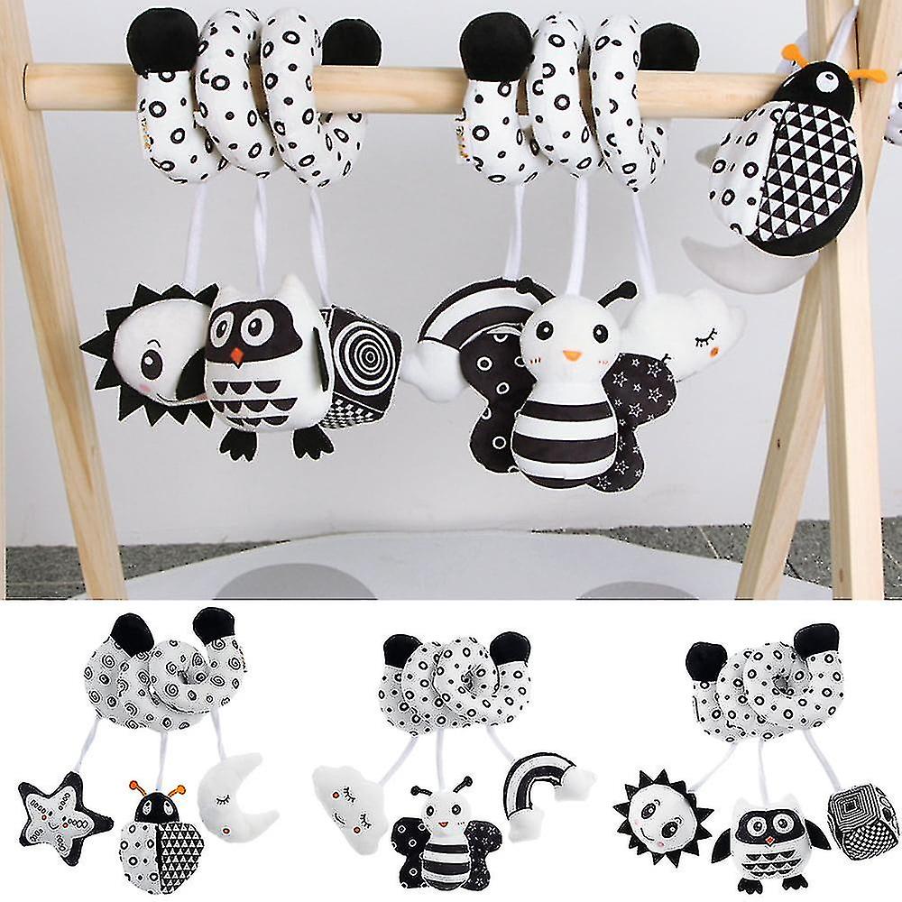 Baby Activity Black White Spiral Hanging Plush Animal Toy Stroller Car Seat Cot Rattles Pram Handbell