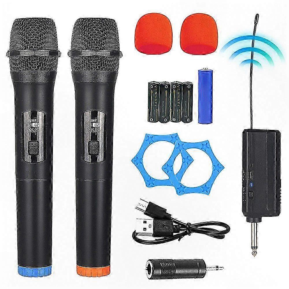 Dual UHF Wireless Microphone System with Receiver, High-Quality Audio Performance