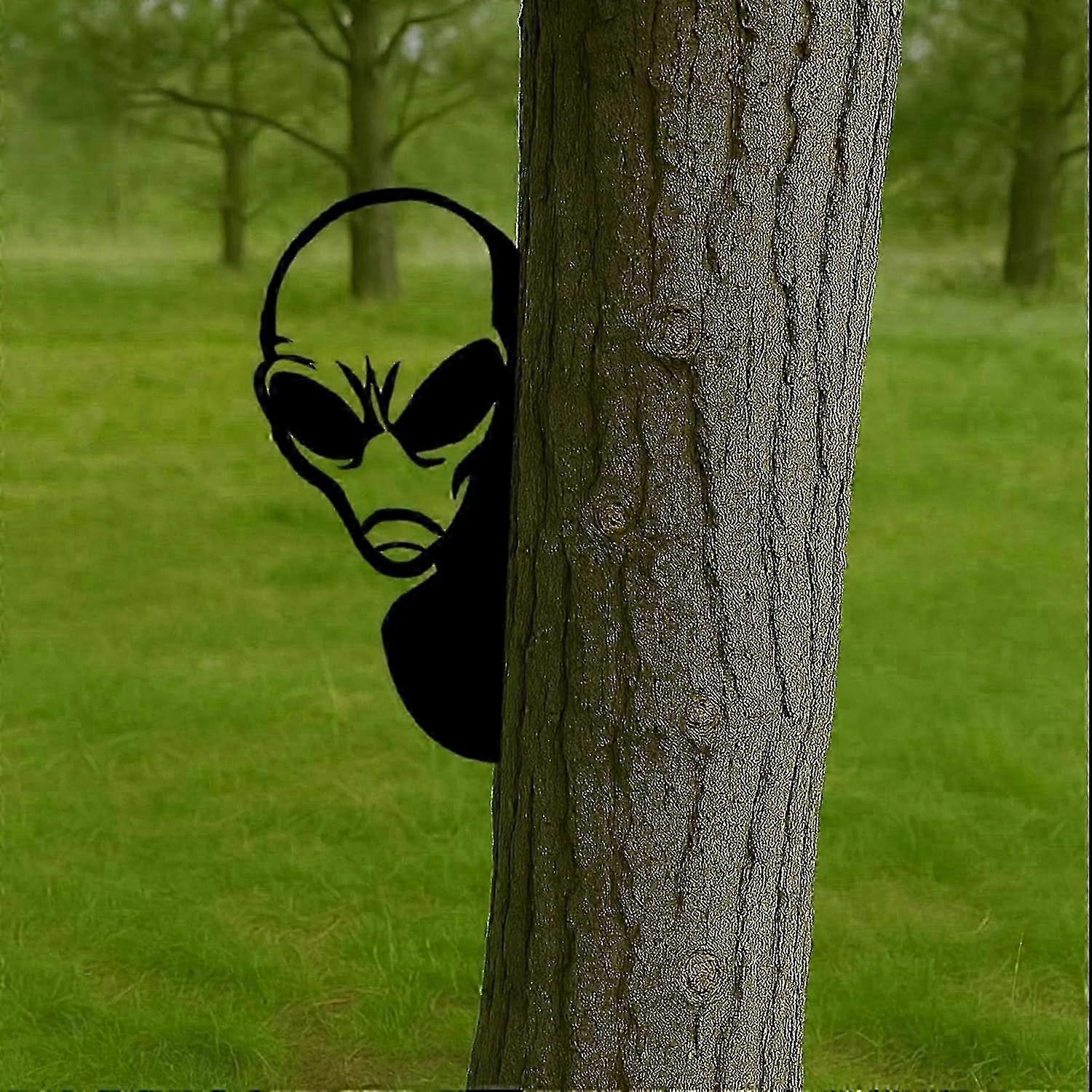 Funny Peek-a-Boo Alien Metal Sign UFO Ornament, Middle Finger Alien Peeping Around Signs Flipping off Outdoor Garden Decoration 38 x 20 cm