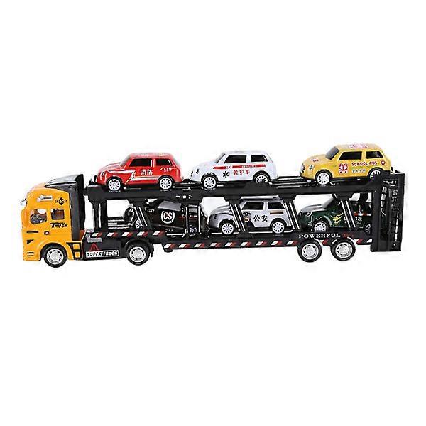 Metal transport truck toy model, detachable with six cars, children's simulator model, gift, yellow