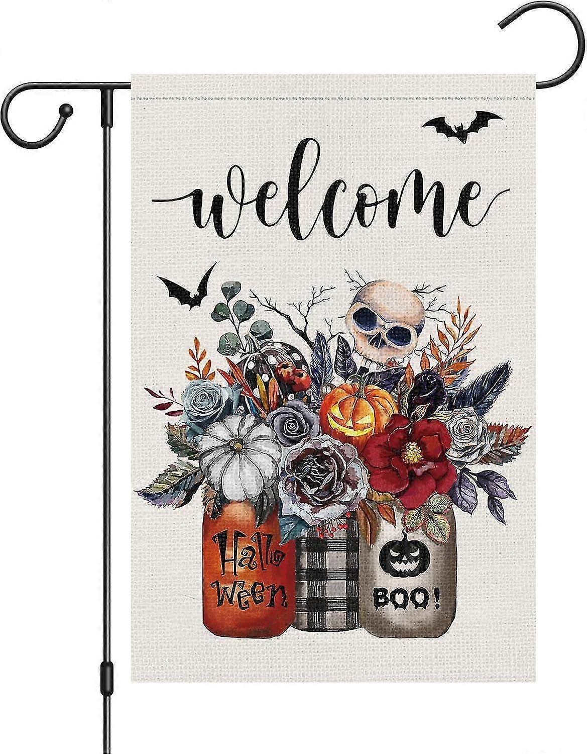 Halloween Floral Garden Flag 12x18 Double Sided Burlap Small Welcome Halloween Mason Jar Skull Yard House Flags Seasonal Holiday Outdoor Outside Decor