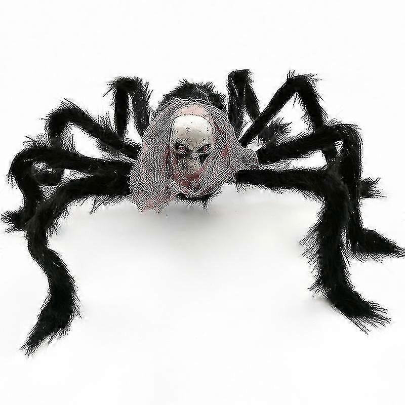 Halloween Decoration Ghost Head Spider, 1 Giant Scary Skeleton Spider, Halloween Furry Spider Scary Fake Props For Indoor Outdoor Garden Lawn Home Hol