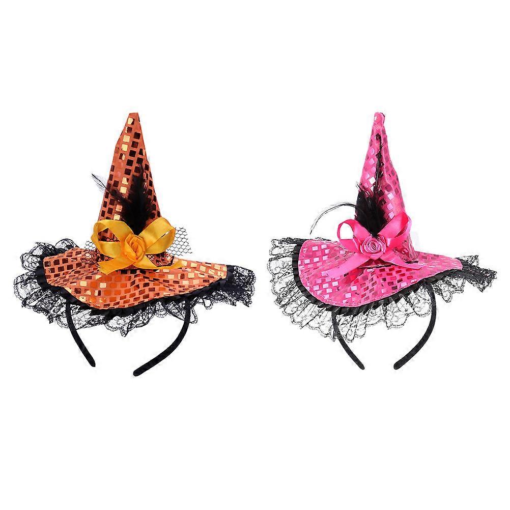 Halloween Witch Hat Headbands with Lace & Sequins Lightweight Costume Hair Accessories for Party Costume Accessories for Halloween Parties Orange