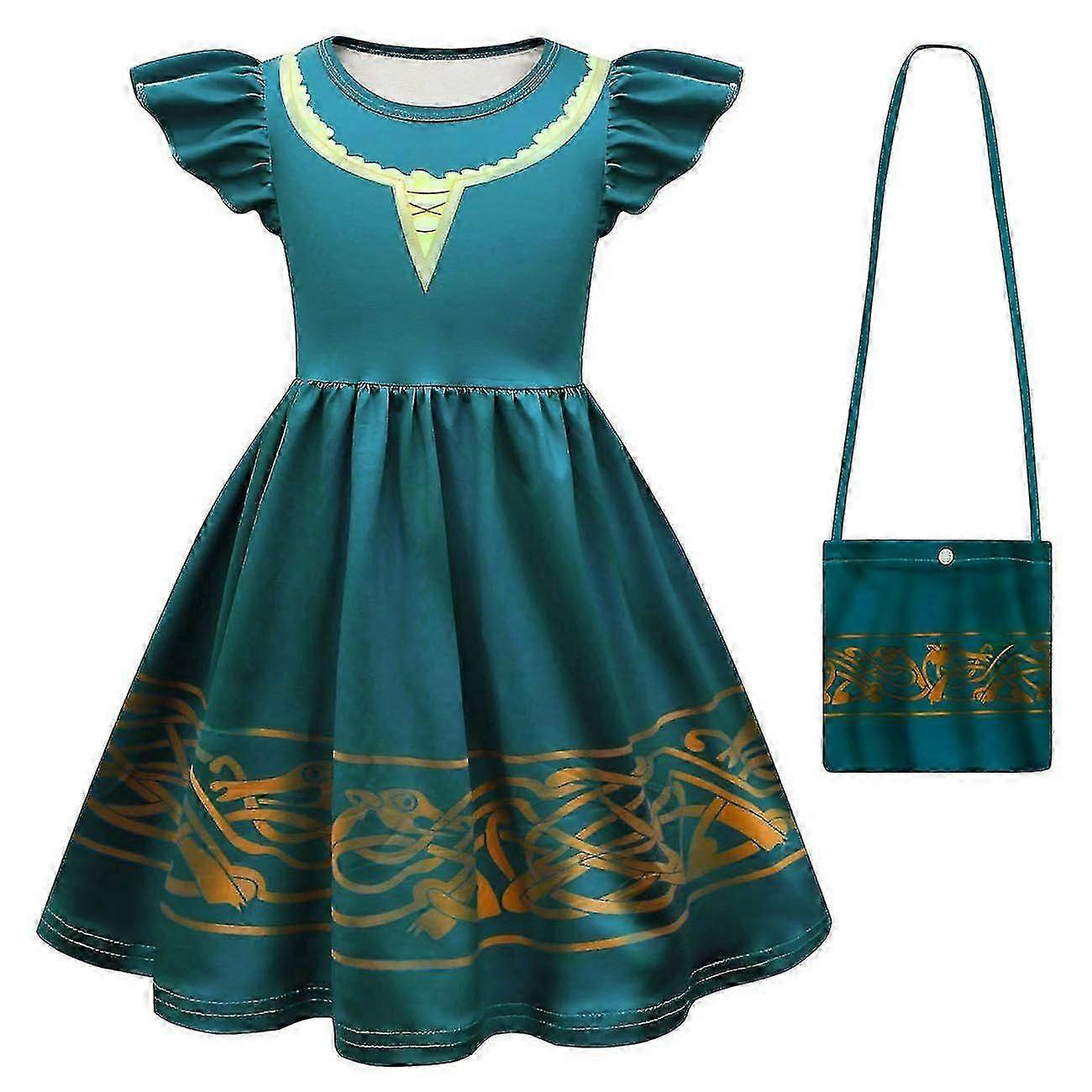 Halloween Girls Merida Cosplay Dress Brave Performance Costume Summer Birthday Party Green Gothic Vintage Dresses Wig
