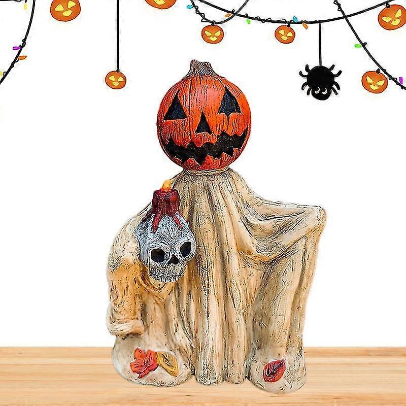 Halloween Pumpkin Ghost Spooky Figurines Resin Statues Holding Skull Table Decor Horror Craft