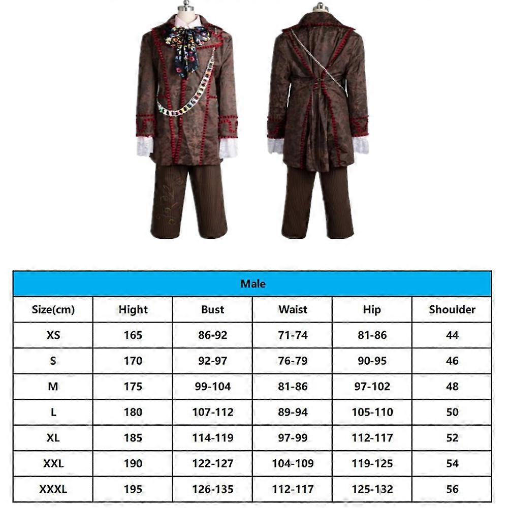 Halloween Mad Cosplay Hatter Fantasy Costume Movie Alice Disguise Adult Men Roleplay Wig Coat Pant Outfits Carnival Party Suit