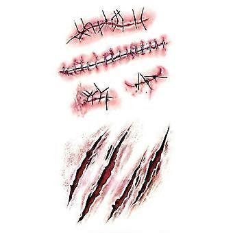 Halloween Masquerade Prank Horror Realistic Fake Bloody Wound Stitch Scar Scab Waterproof Temporary Sticker Makeup Props