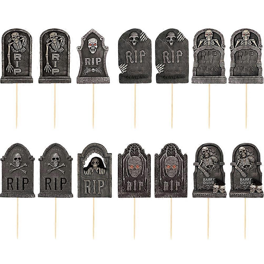 Halloween Cake Decorations Tombstone Cupcake Toppers for Decoration 64Pcs