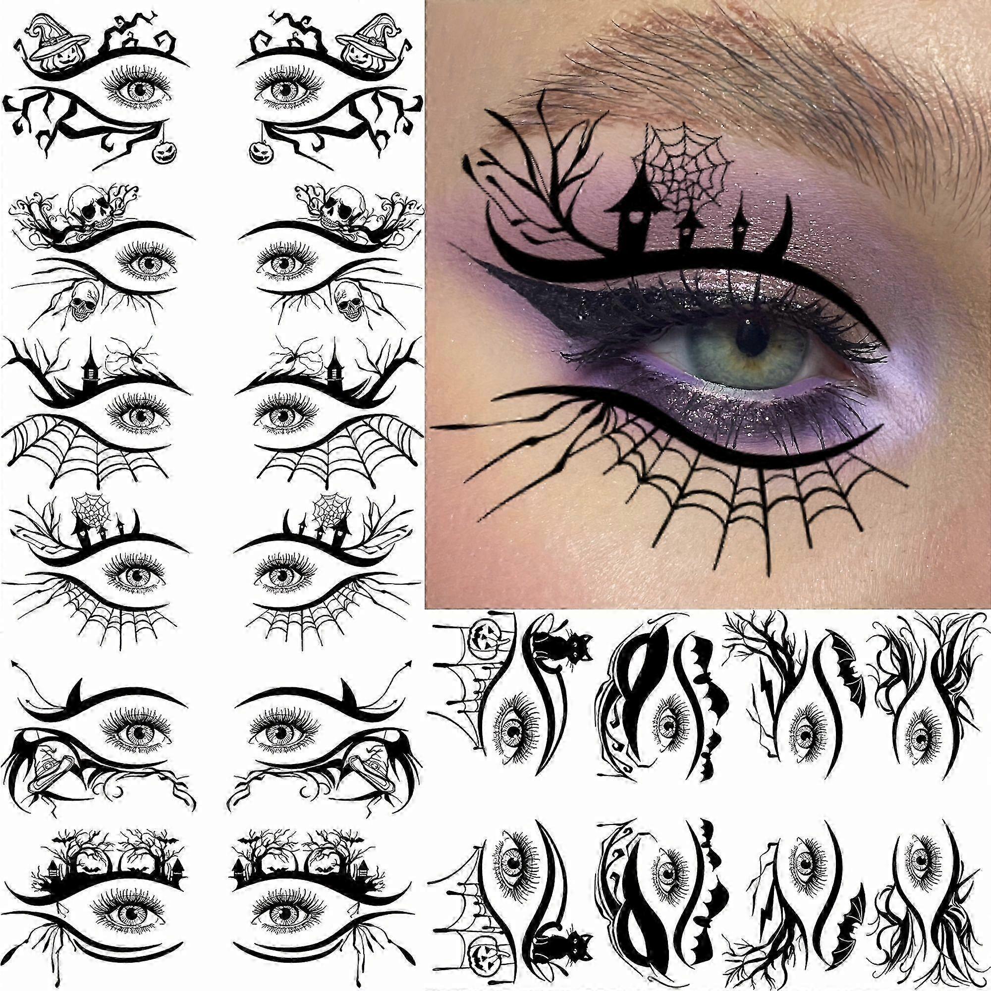 Halloween witch eye makeup temporary tattoos, 10 pieces of realistic fake eye tattoo stickers, suitable for role playing and parties