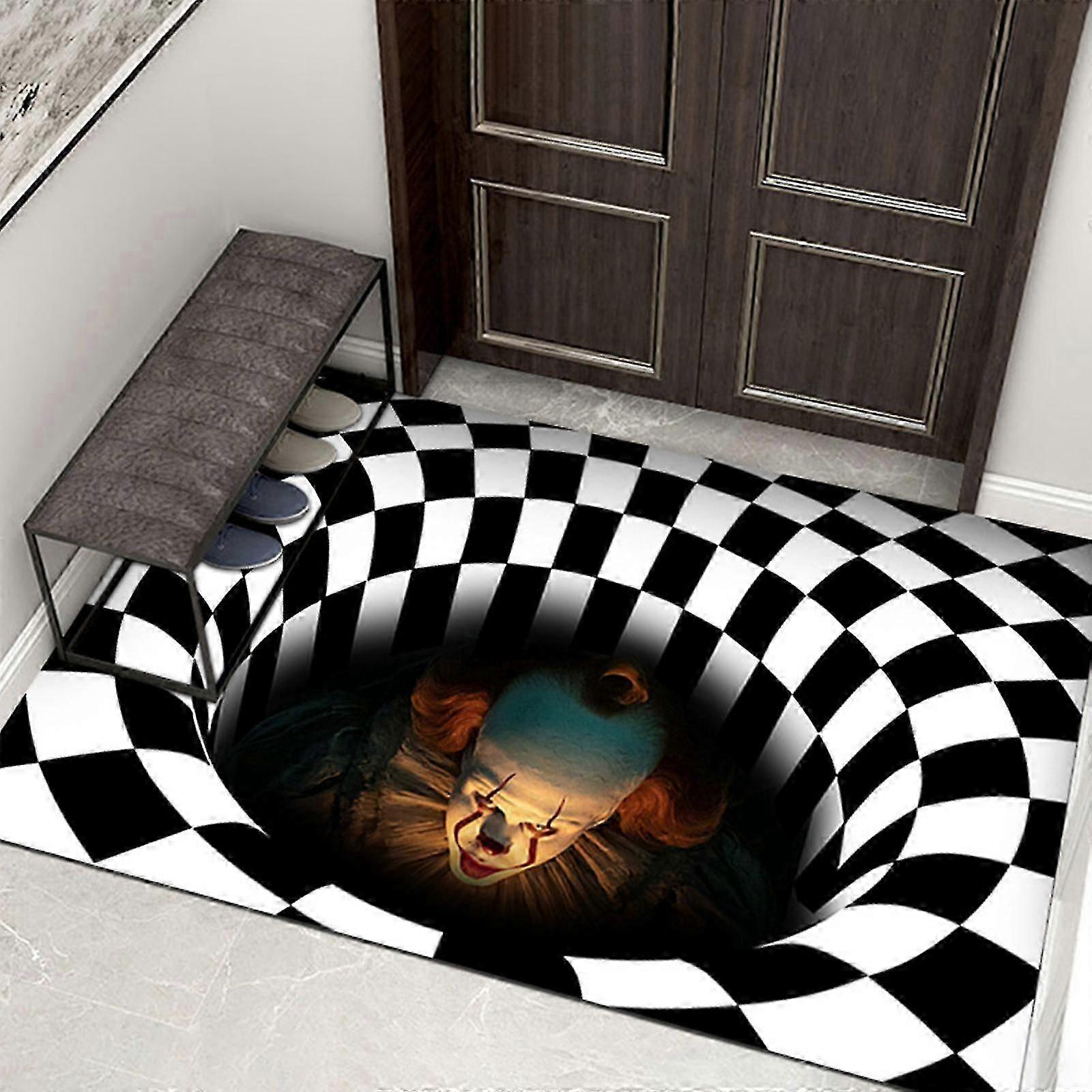 Halloween 3d Illusion Clown Doormat Horror Movie Clown Halloween Area Rug Decoration Indoor And Outdoor Welcome Doormat Anti-skid Halloween Rug Bedroo