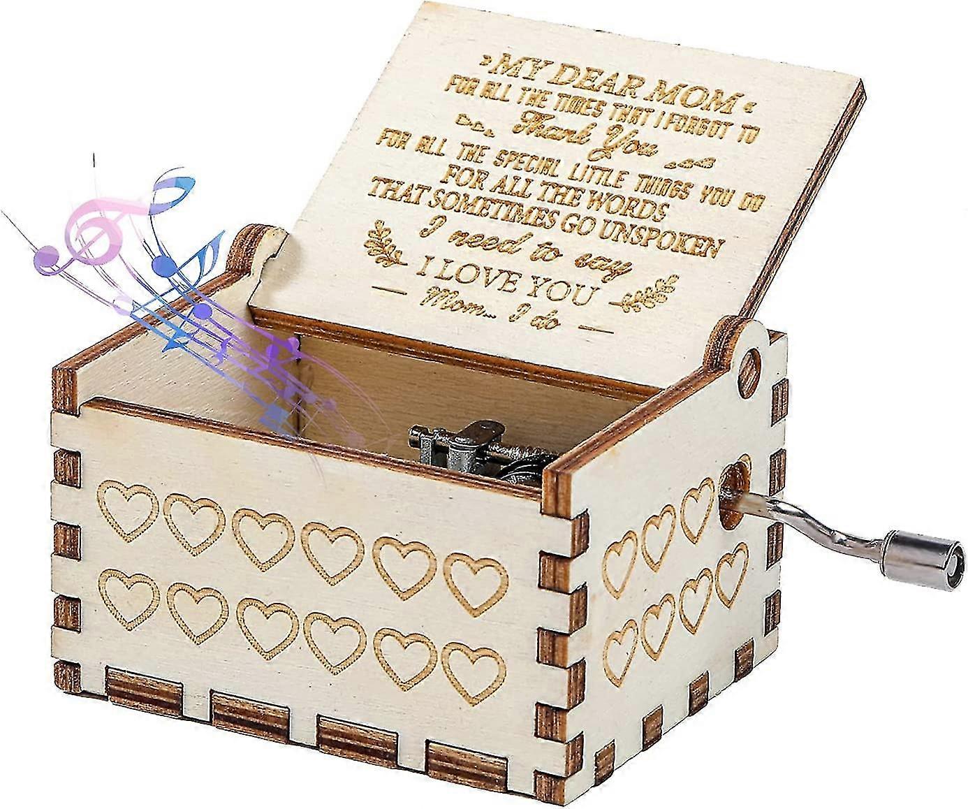 Mini music boxwooden classical design, imitating the delicate surface of ancient hand-carved, the size is 6.4*4.2*5.2cm.Hand-cranked design, no batteryRotate the handle, you will hear a clear music without battery power. You are My Sunshine Music melody,Let your mood calm and enter a magical world.Great gift beautiful carving, Made as good quality,moving melody, it is the best Christmas, birthday, wedding anniversary, Valentine's Daughter/Son gift for the MUM.Easy to carry Portable and light design can place it on the palm of your hand, small bag, bedroom desk etc.Work as a perfect ornament.No limit to the crowdIt has good musical effects and is easy to use, suitable for both adults and children(The crank is easy to move and kids can do it easily)