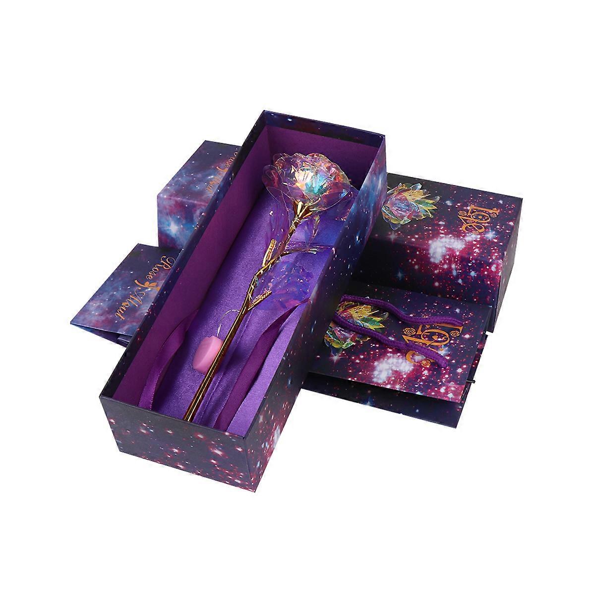Creative LOVE Base Gold Rose Romantic Rose Present for Christmas Valentine's Day (Flower with Drive-by-wire Light Style, Purple Box, Handbag, LOVE Bas