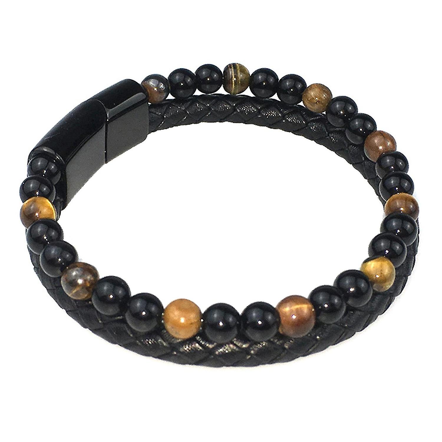 Gift Healing Tiger Eye Men Women Beaded Bracelet Natural Stone Braided Leather