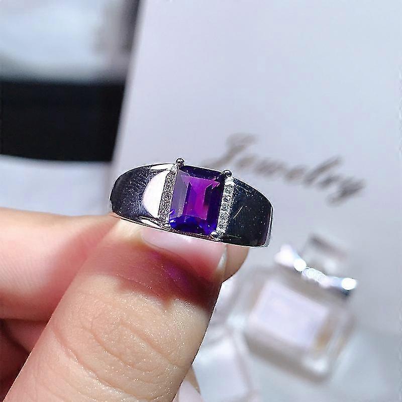 Gift for girlfriend lover 925 sterling silver Natural Amethyst Men's Ring Adjustable Mouth