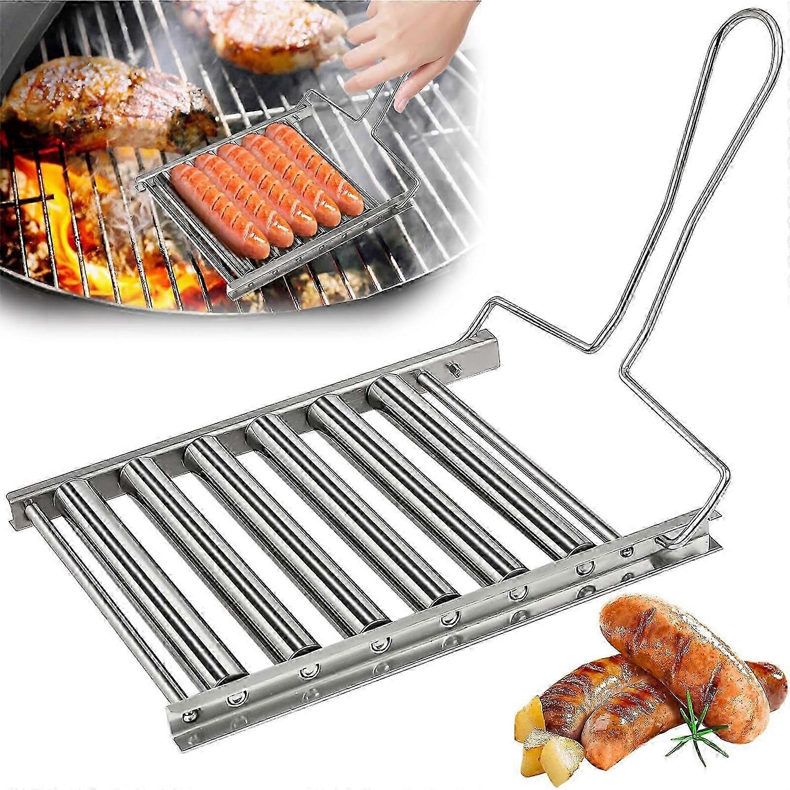 Hot Dog Roller for Grill, Hot Dog Roller Grill, Hotdog Roller Stainless Steel Sausage Roller Rack with Handle