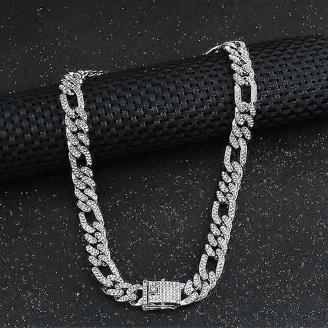 Hip Hop 1set Miami Curb 13mm Iced Out Paved Rhinestones Figaro Link Chain Necklace C Bling Necklace For Men Jewelry With