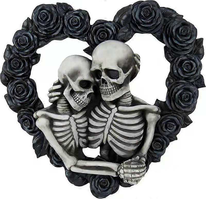 Skeleton Couple House Number Black Rose Ring Halloween Home Decoration(1pcs, black)