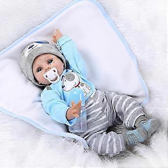 واقعية ريبورن بيبي دول بوي أزرق 55 سم مع إكسسوارات - رأس سيليكون وأطراف ، جسم قطني