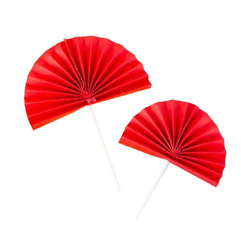 Red Paper Semicircle Folding Fan Cake Topper for Birthday Party Decoration 12pcs