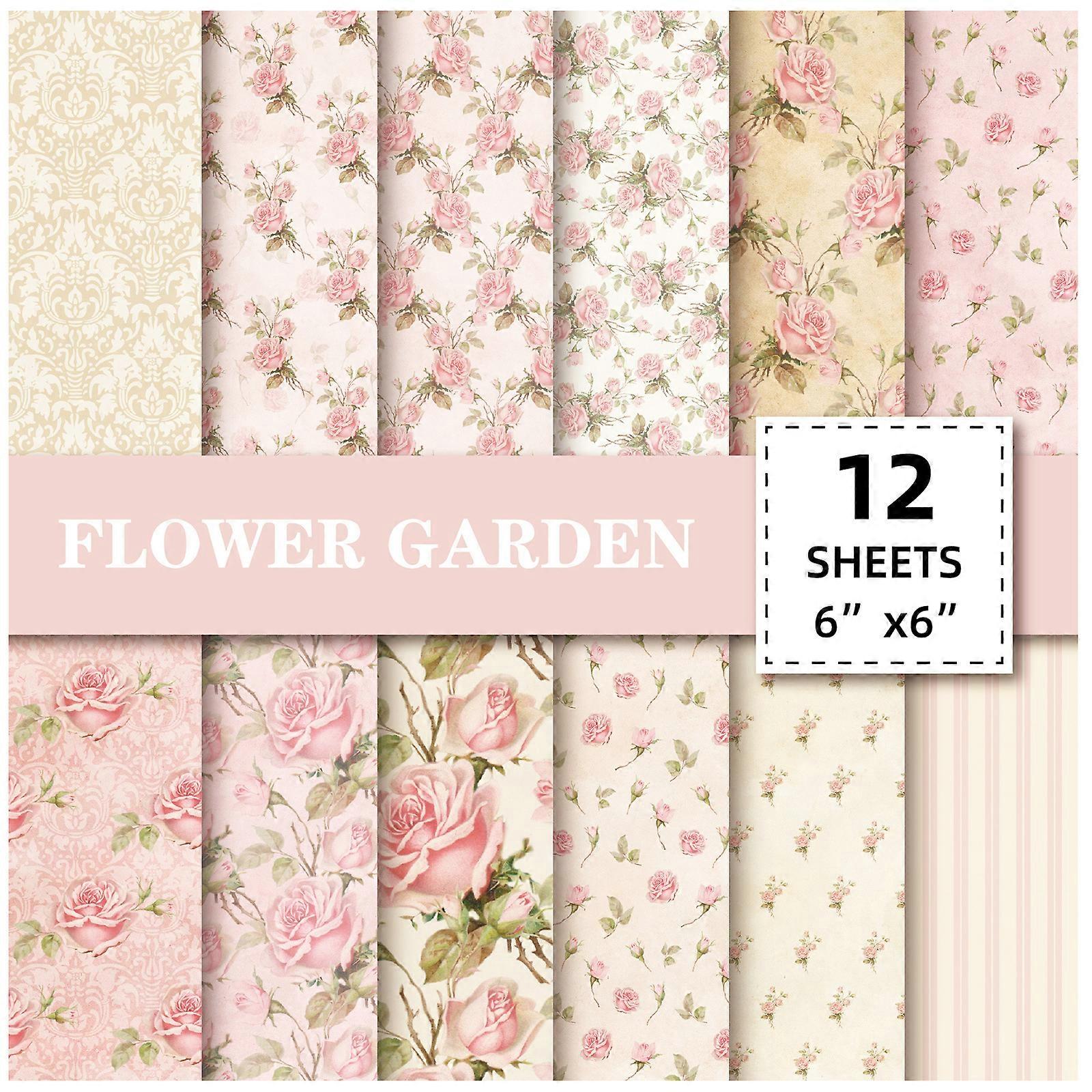 Cardstock Paper 6"x6", 48 Sheets Scrapbook Paper Pad Single-Sided Flower Plant Pattern Paper Packs, 12 Designs