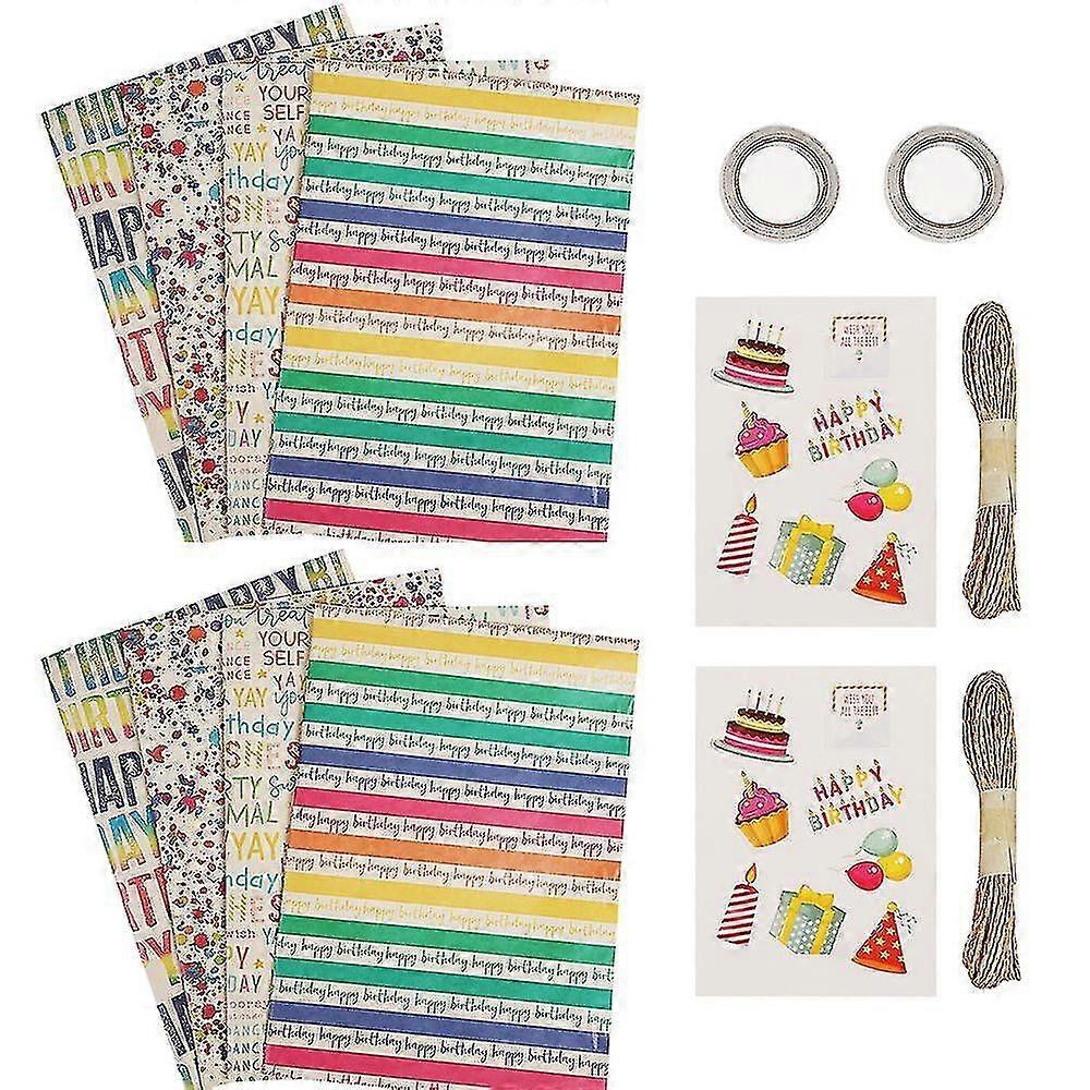 Birthday Wrapping Paper For Kids, Adults, Colorful Gift Wrapping Paper, 50*70cm, 8 Sheets W/string And Sticker