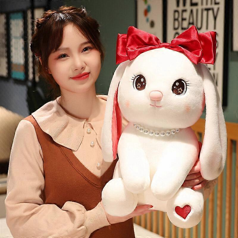 Cute bunny plush pillow, kawaii bunny stuffed animal plush toy, soft plush doll gift with bow, suitable for boys and girls