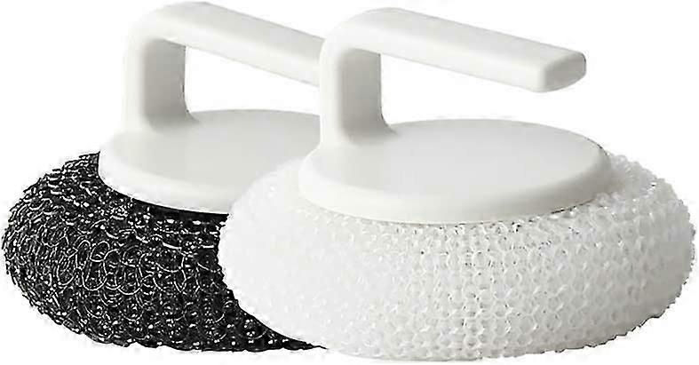 Scrubbing pad with Handle Stainless Steel 2 Pack (Black+White)