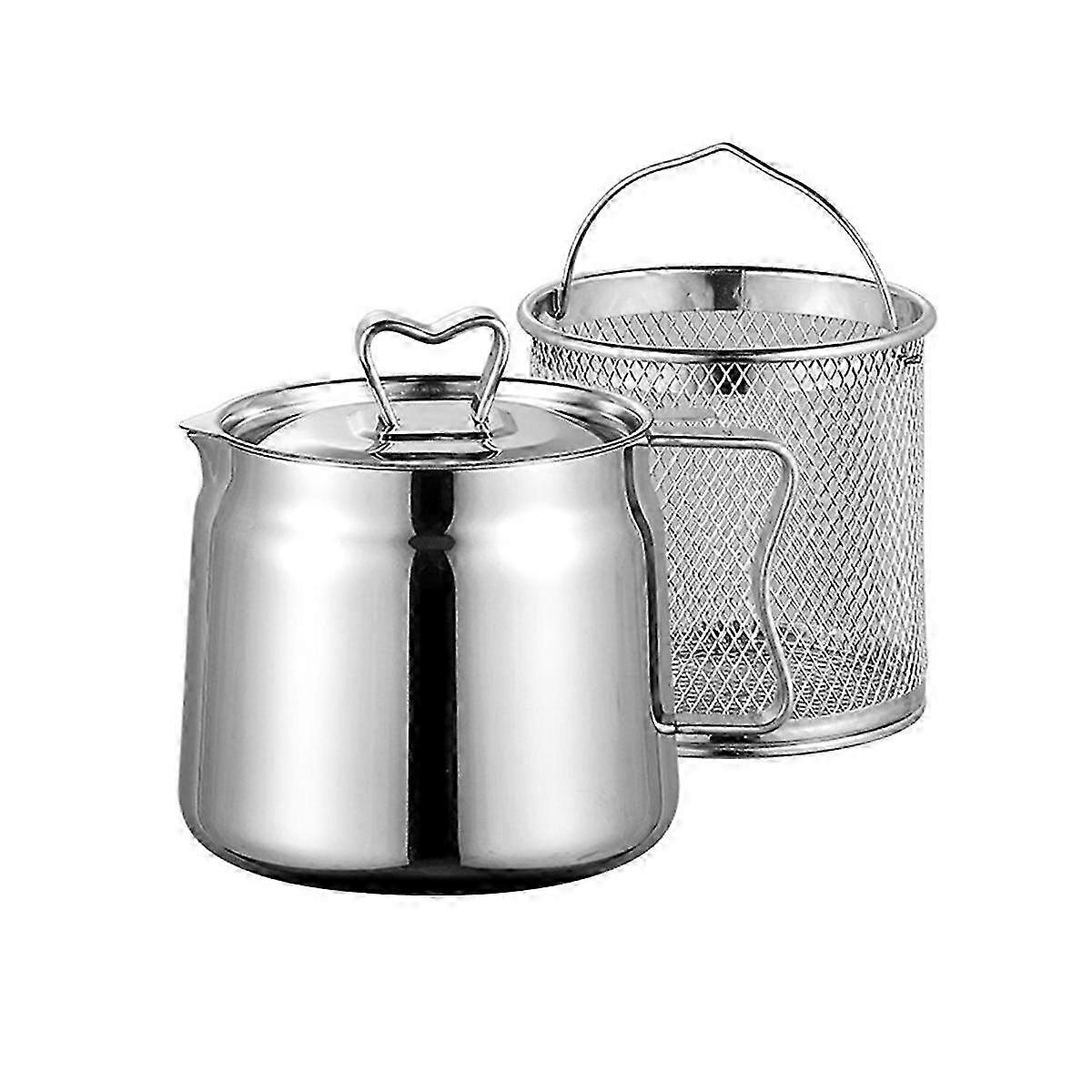 Oil Pot,Oil Pot Stainless Steel Large Capacity Oil Fryer and Filter Cup Combo Versatile Oil Filter for Kitchen 1.5L
