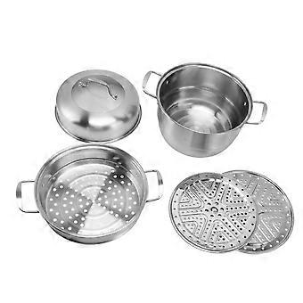 وعاء بخار من الفولاذ المقاوم للصدأ مع مقابض على كلا الجانبين وعاء طهي متعدد الطبقات سميك وعاء بخار مع غطاء زجاجي مقسى 3 طبقات