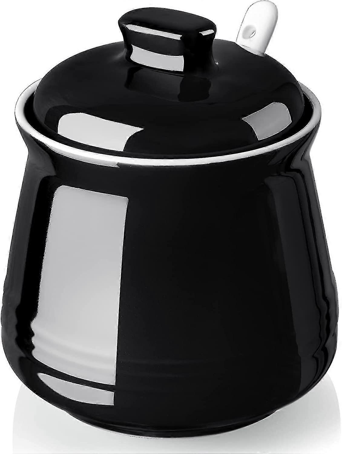 Farmhouse Sugar Bowl With Lid And Spoon, 12 Oz Ceramic Sugar Bowl With Spoon, Sugar Container For Coffee Bar, Sugar Jar Sugar Dispenser Bowl, Modern F