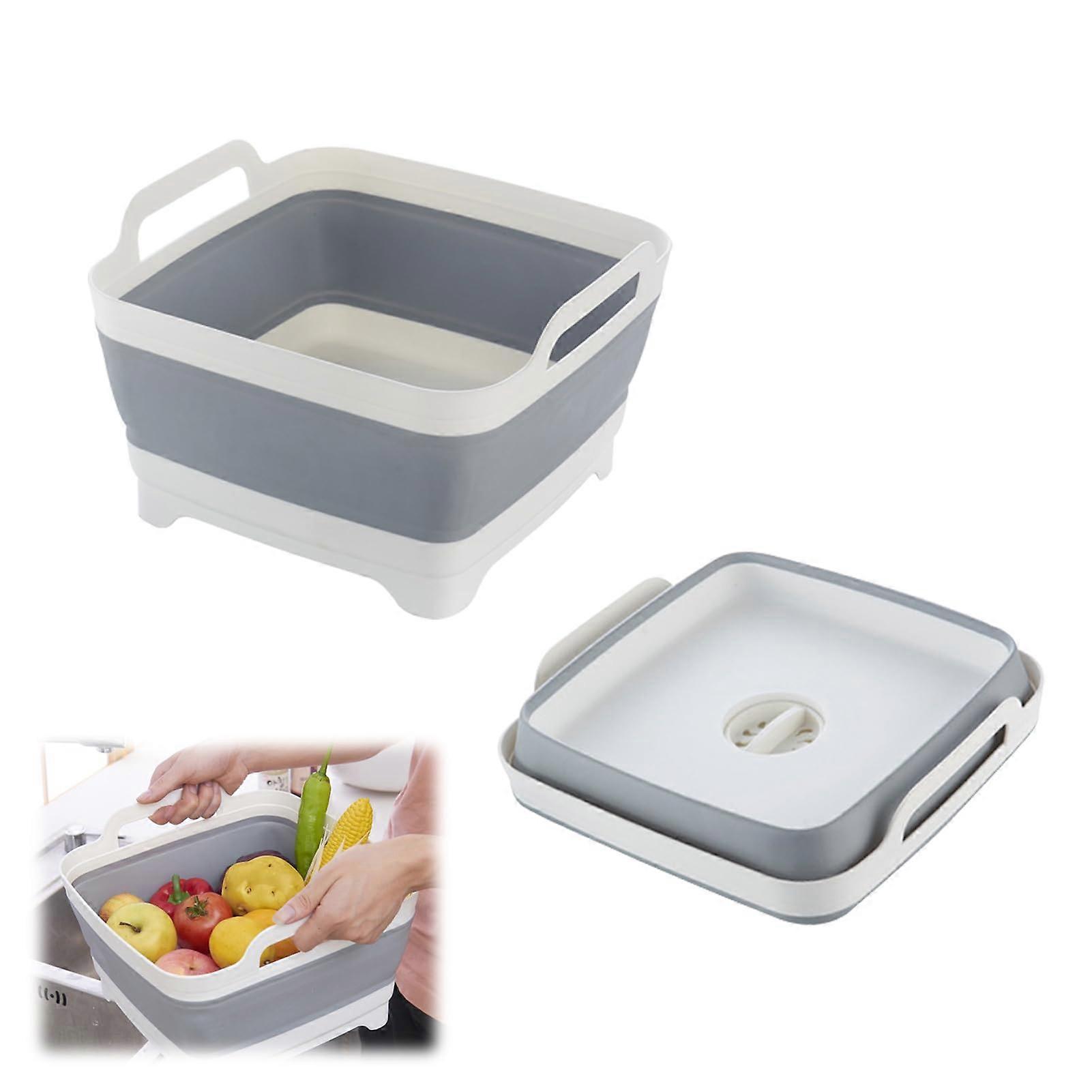 Foldable Washing Up Bowl for Camping - Collapsible Wash Basin with Drain Plug and Carry Handles - Portable Outdoor Washing Dish