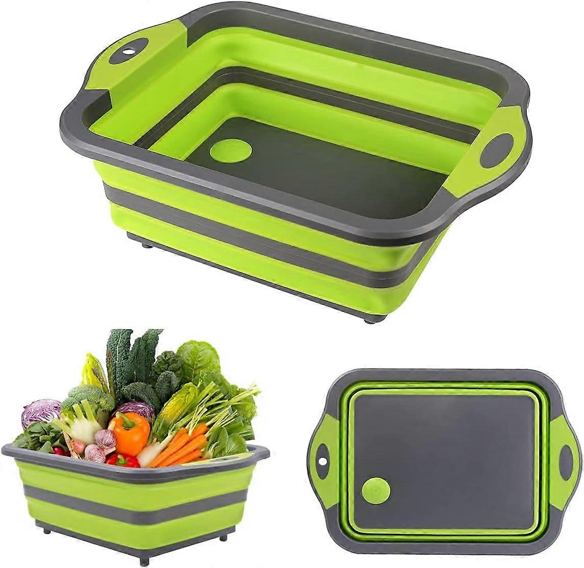 Collapsible Washing up Bowl and Plastic Chopping Board with Drain Plug, Foldable Camping Sink, Fruits Vegetables Wash Dish Tub Basin