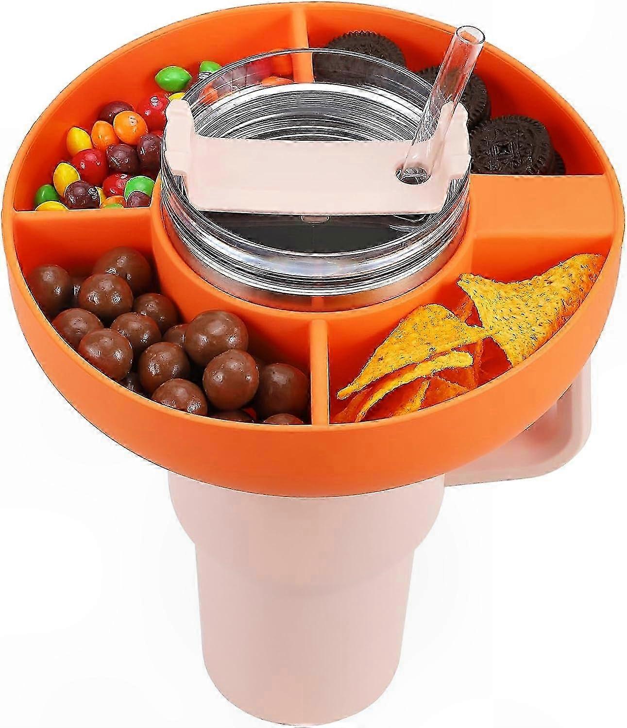 4-Compartment Reusable Snack Bowl with Handle, Compatible with 40oz Tumblers, Silicone Snack Tray for Outdoor and Home Use