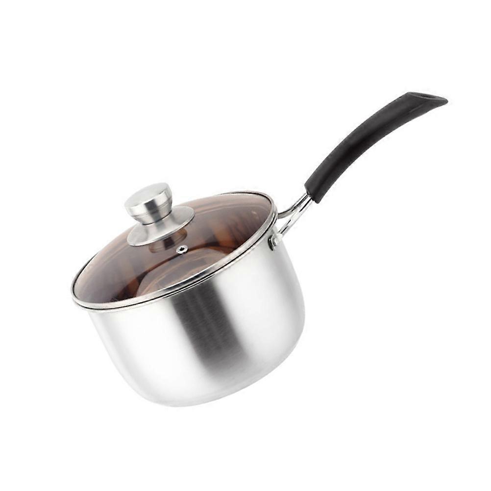 Stainless Steel Stockpot With Lid Single Long Handle Cooking Pot Thick Kitchen Soup Pot For Home Silver 18cm Round Flat Base Heat Resistant 1Set