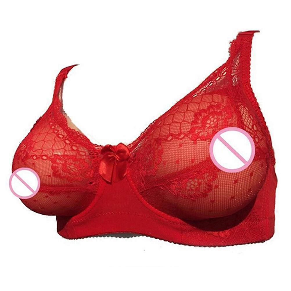 Fake Breast Bra Pocket Bra Silicone Breast Forms Crossdressers Cosplay Prop 75C(Red)