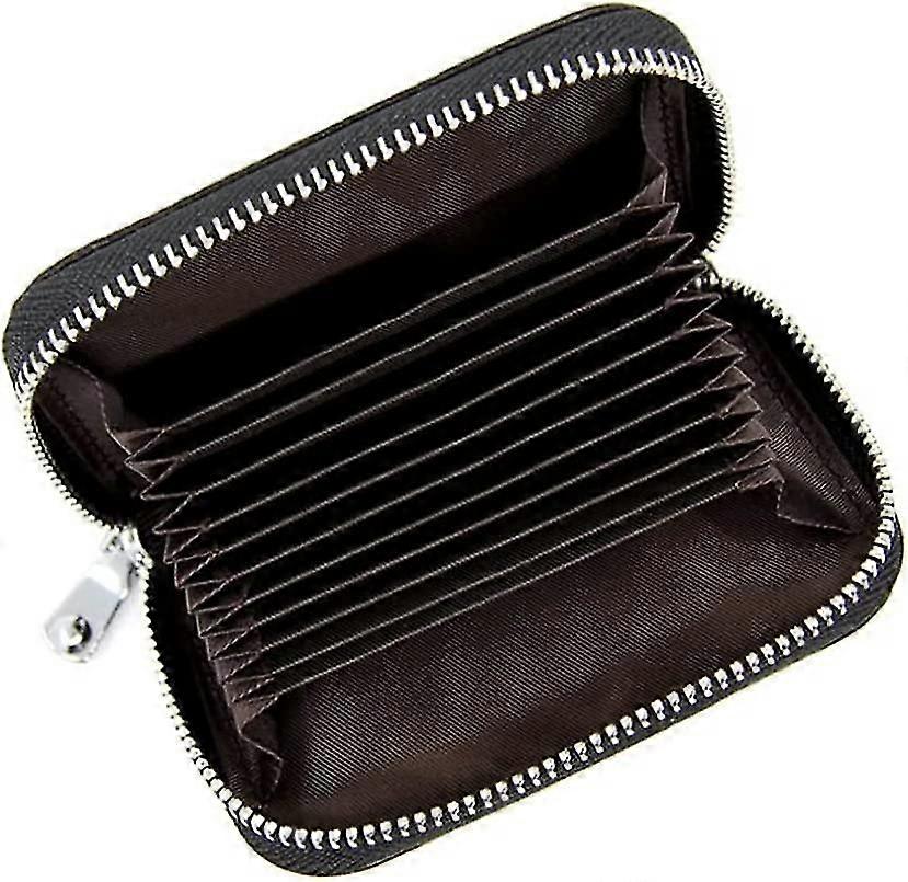 Wuzhou Card Holder Anti-theft Brush Organ Card Holder, Multi-card Slot Zipper Leather Card Holder, Multi-function Id Bag, Wallet(1pc, Black)