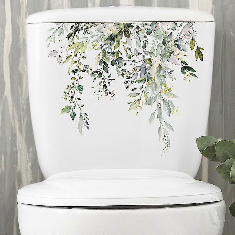 Green Plant Leaves Bathroom Toilet Sticker WC Closestool Wall Sticker Self Adhesive Mural Beautify Flower Home Decoration Decals