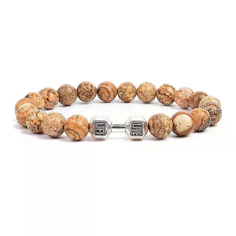 con Dumbbells For Men Beads Bracelet Natural Black Volcanic Lava Stone Energy Barbell Fashion Bracelets Bangles Handmade Jewelry