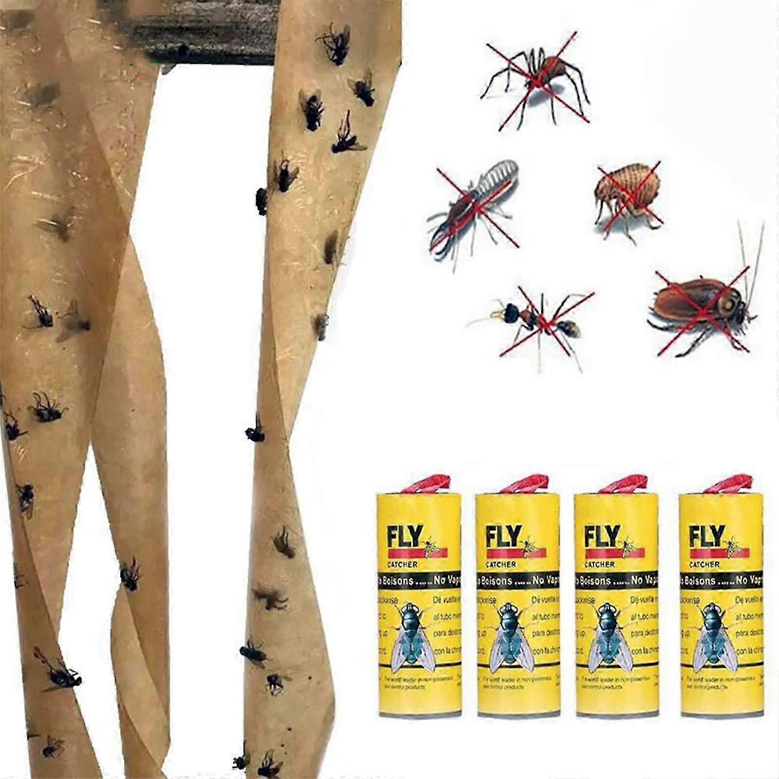 Fly Traps Ribbon For Indoor, Sticky Fly Strips, Fly Paper Tape Catcher For Gnat Fungus Fruit Flies Glue