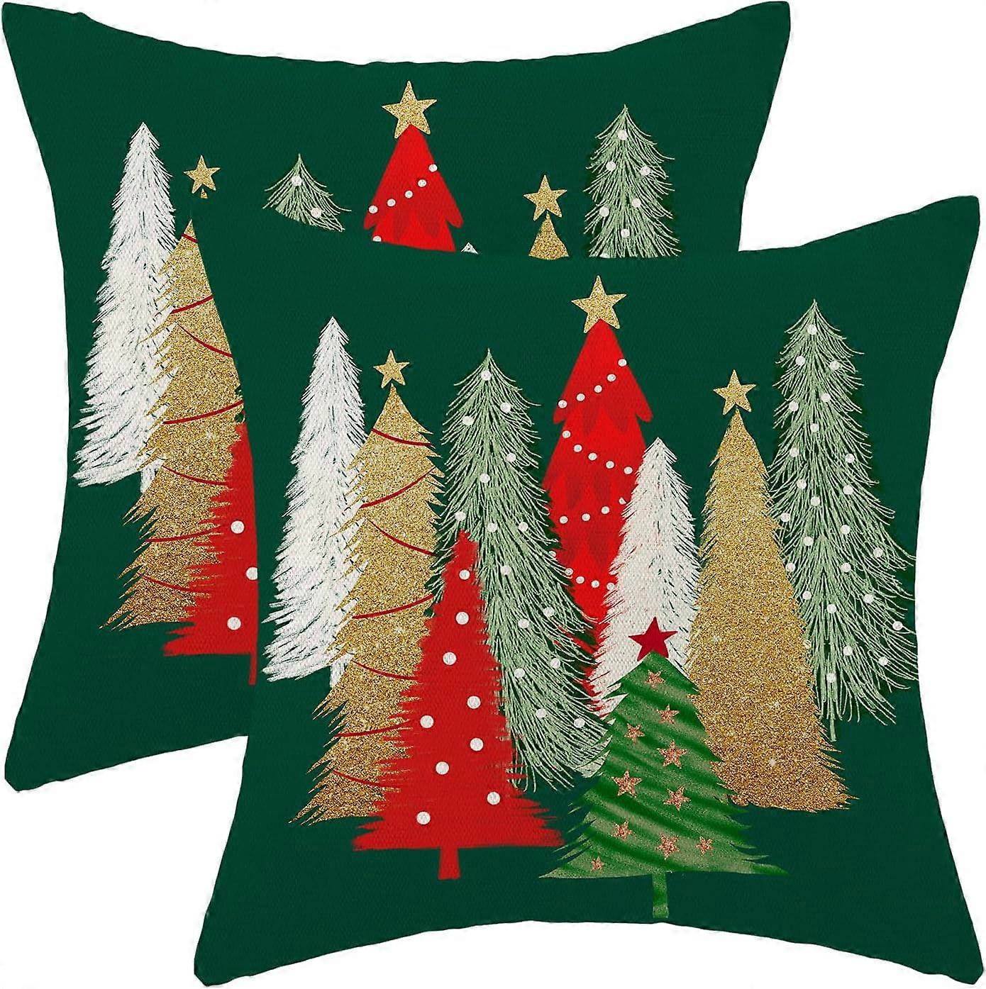 Christmas Pillow Covers 16x16 Inch Set of 2 Colorful Christmas Tree Throw Pillows Case, Stars Holiday Outdoor Decorative Farmhouse Winter Green Decor