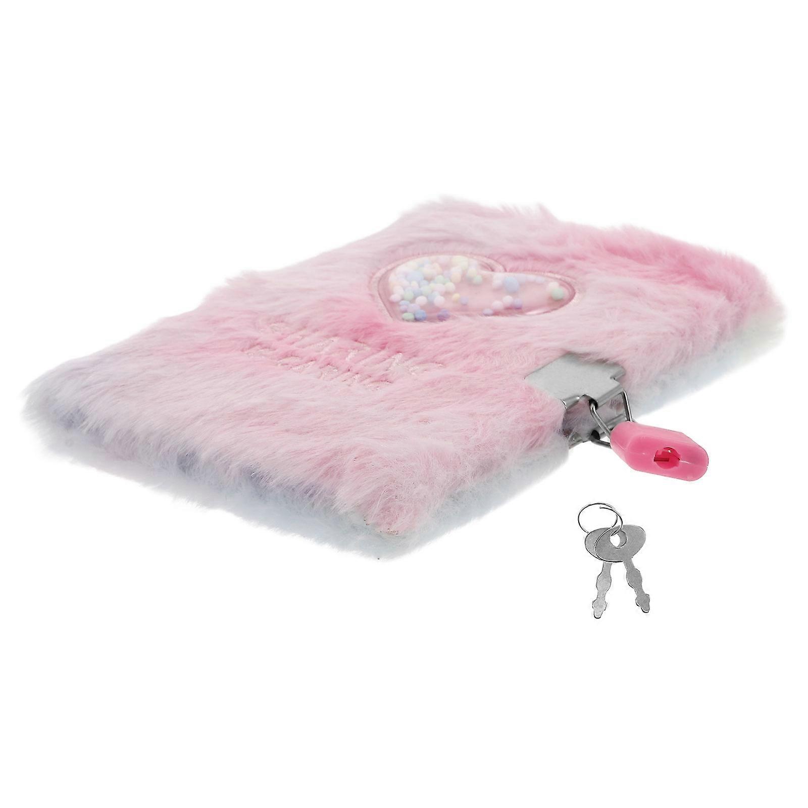Fluffy Cartoon Diary with Lock – Soft Fuzzy Notebook for Heart Pattern Design, Secure Writing for School, Office and Creative Use