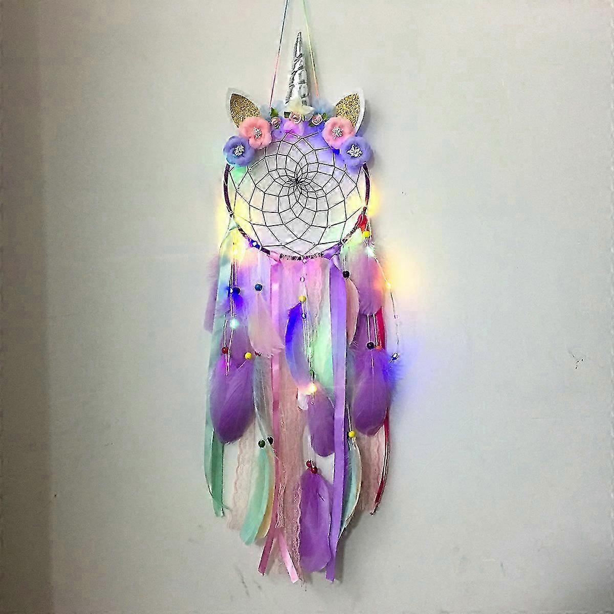 Unicorn Dream Catcher with Colorful Led Light for Girls Boys Bedroom Wall Decor Hanging Ornament Festival Gift (Pink