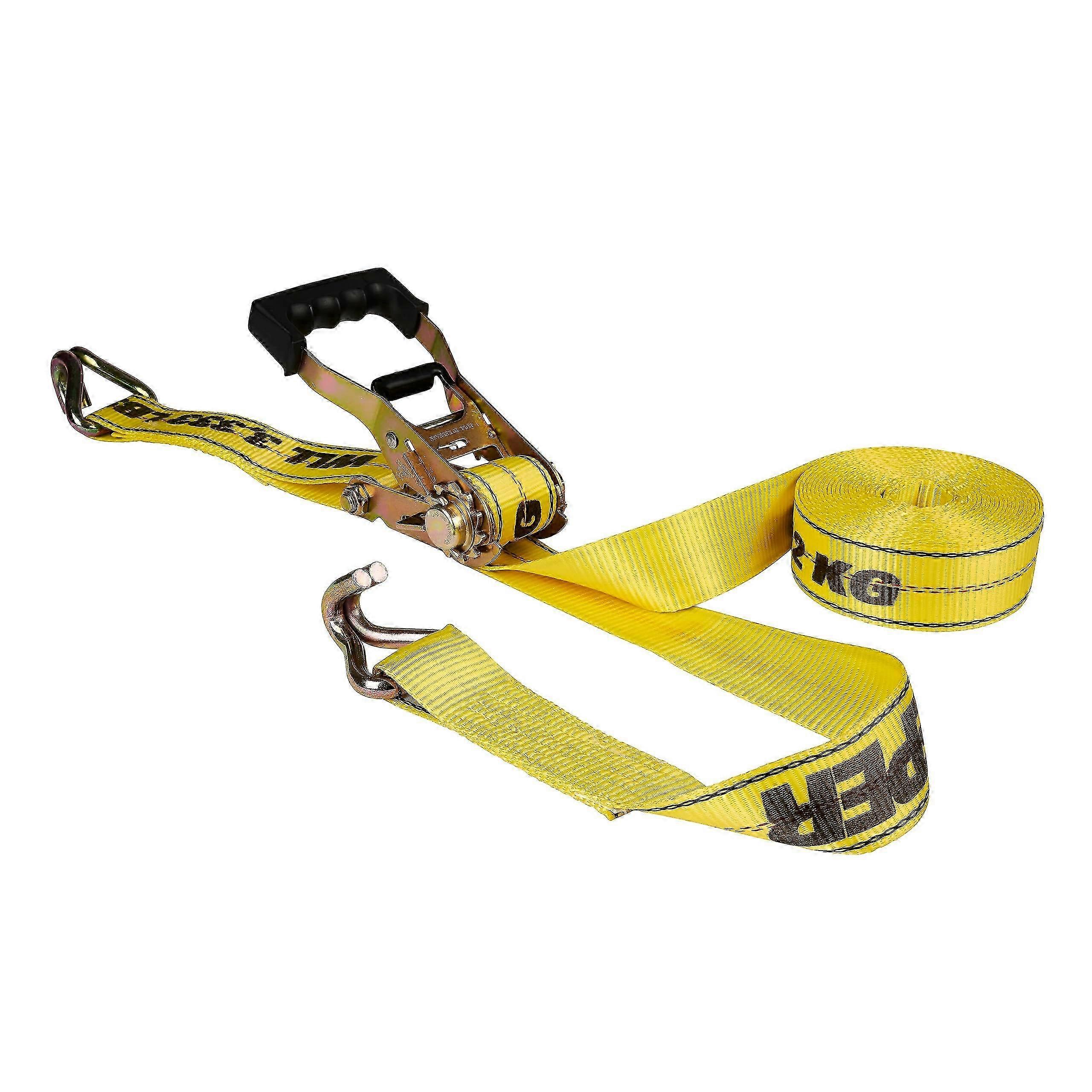 1.Quality And Durability: 27 Ft. Ratchet TieDown Features An Abrasion And RotResistant 2 In. HiTest Webbing To Absorb Shock During Transportation. 2.Securing Features: Constructed With A Steel Ratchet, Open Molded EZ Release Handle And Double JHooks To Prevent Scratching And Marring To Vehicle And Cargo. 3.How To Use: To Engage, Attach The Hook To An Anchor Point, Pull Webbing Over The Cargo Load And Tug To Desired Tension; Ratchet By Raising And Lowering The Handle To Lock Cargo Into Place. 4.Ideal Use: Great For Securing Cargo And Equipment To Your Vehicle With A 3,333 Lbs. Working Load Limit. Note: Due to the light and screen setting difference, the item's color may be slightly different from the pictures. Please allow slight dimension difference due to different manual measurement.