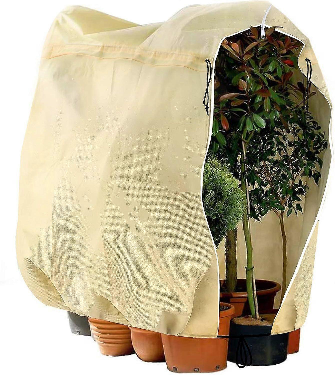 Adjustable Plant Protection Cover Overwintering Plant Cover with Zippered Drawstring (180 x 120 cm Beige)
