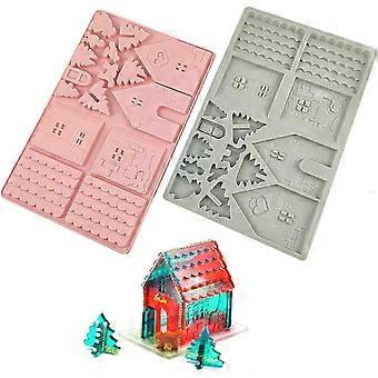 3D-joulutalon silikonimuotit 2 kpl, piparkakkutalon silikonihartsimuotit, linnavalu DIY-hartsisilikonimuotit joulukoristeluun (