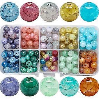 200 قطعة جولة خرز زجاجي متصدع 8 مم خرز كريستال متنوع مع ثقب ملون خرز طبيعي فضفاض لصنع المجوهرات
