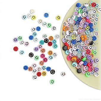 100pcs الملونة مبتسم الوجه الخرز - 10mm الاكريليك جولة الوجه سعيد فضفاضة فاصل الخرز فاصل الخرز لمجوهرات دي Syhww