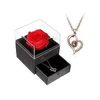 مجموعة قلادة من الذهب الوردي وصندوق تخزين مع إسقاط 100 لغة