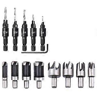 14 قطع الخشب التوصيل هول القاطع المشطوفة التوصيل القاطع لقم الثقب خمسة فتحة كونتربال الحفر 1/4 بوصة